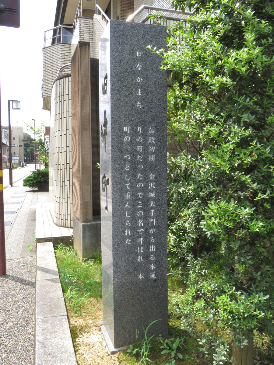 藩政初期、金沢城大手門から出る本通りの町だったのでこの名で呼ばれ、本町の一つとして重んじられた。