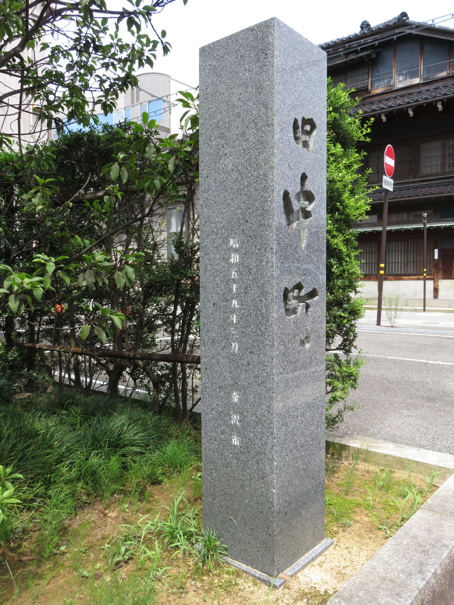金沢城公園大手門口より北へ真っすぐ進んだ先、左手の緑地帯の中に立っています。
